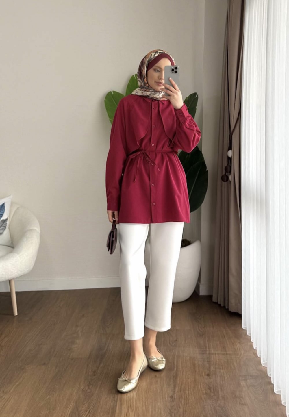 Almeda Pelerin Gömlek Bordo