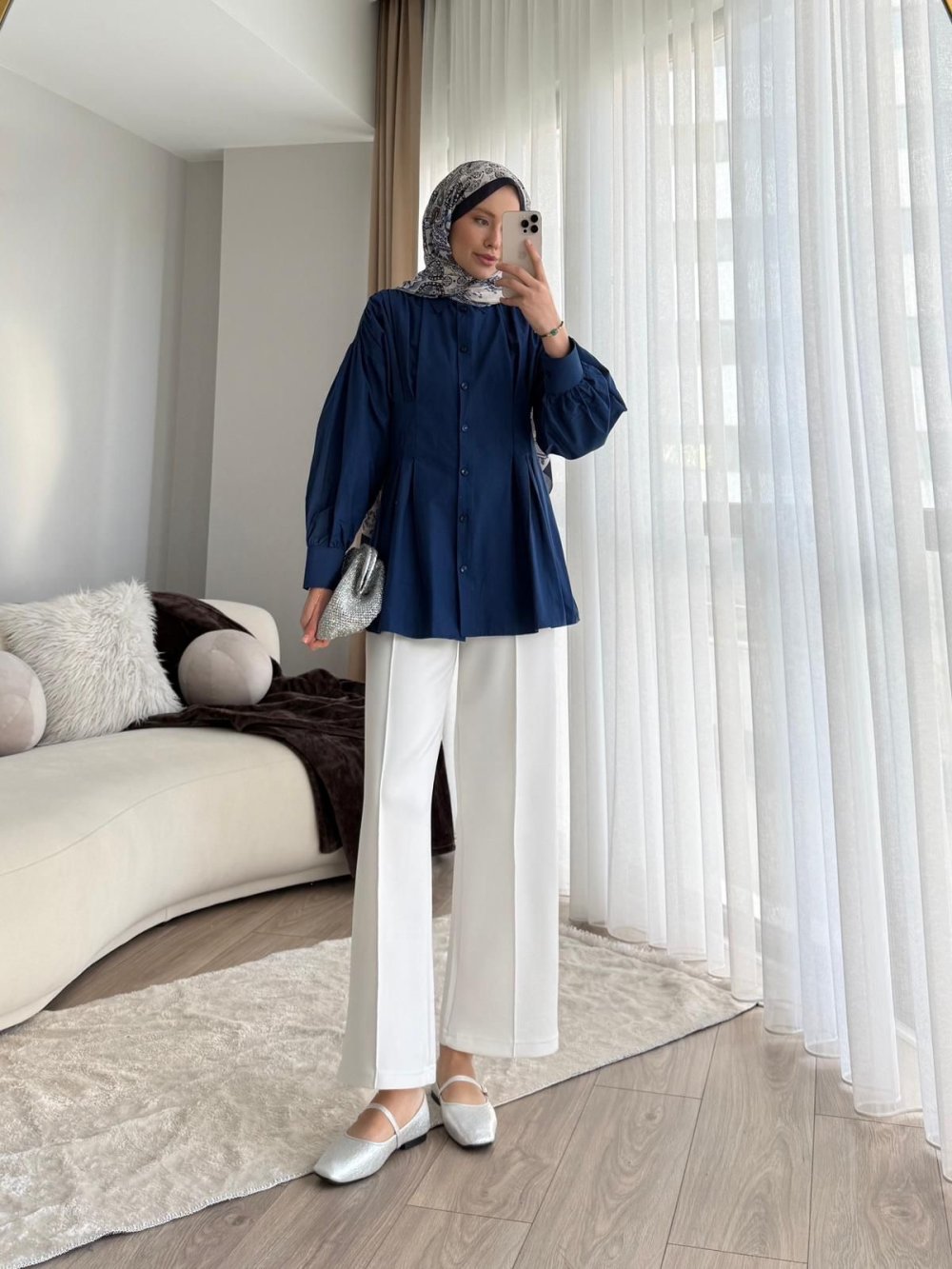 Drapeli Detay Gömlek Lacivert