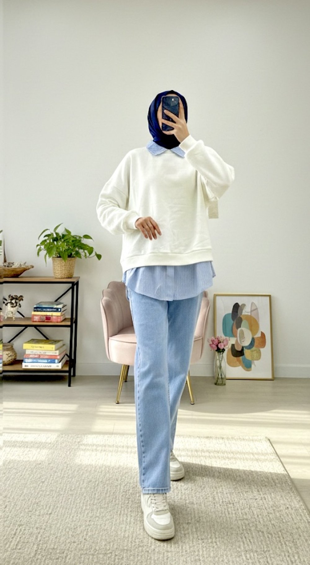 İçten Gömlekli Sweatshirt Beyaz