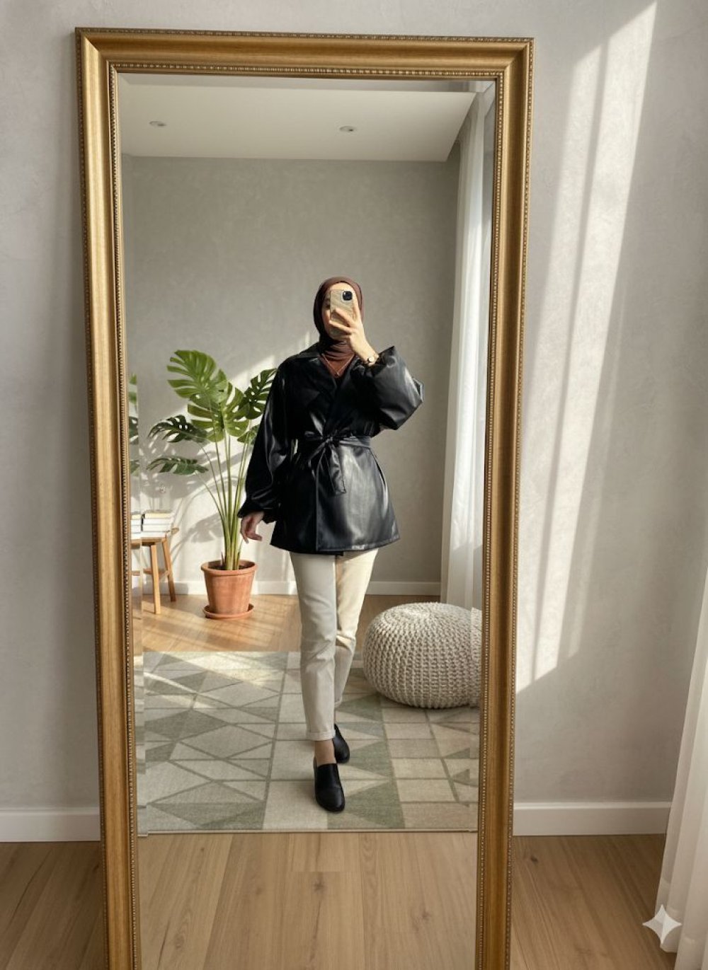 Lahza kemerli deri ceket Siyah