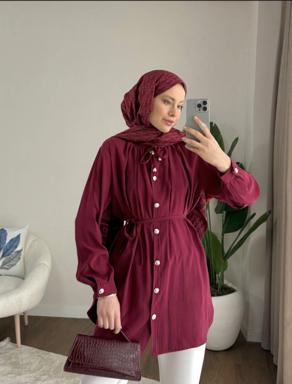 Loysa Belden Bağlamalı Gömlek Bordo