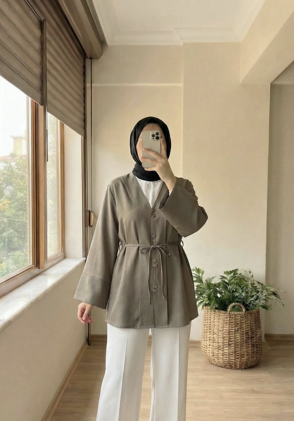 V Yaka Belden Bağlamalı Gömlek