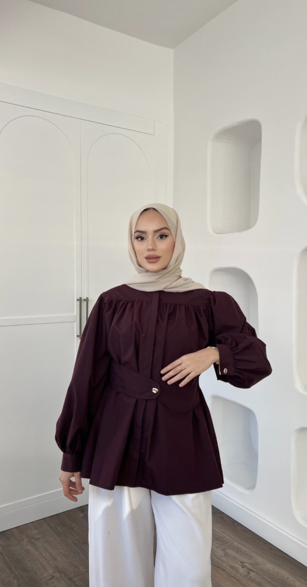 Vaye Kemerli Gömlek Mürdüm