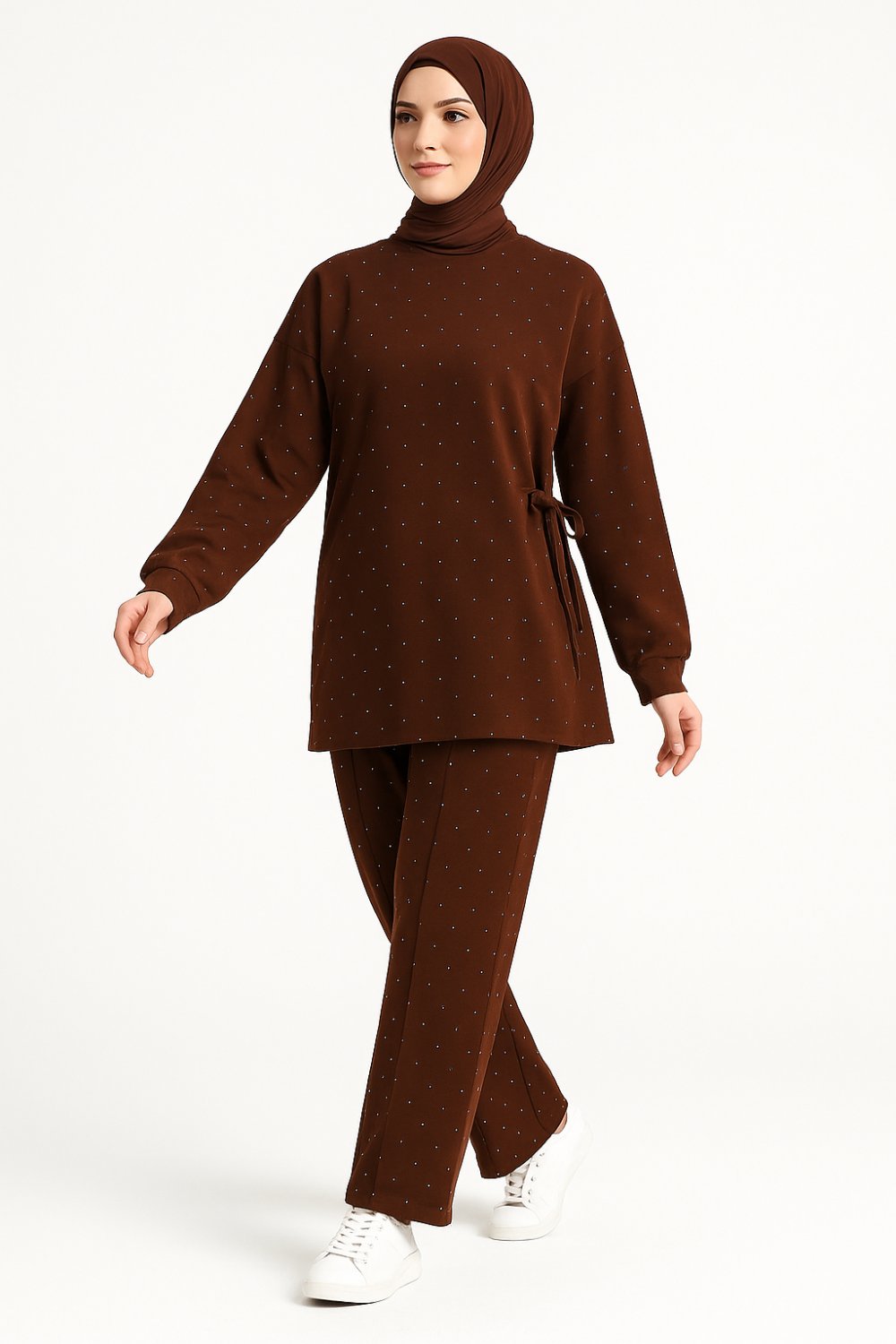 Yandan sıkmalı taşlı takım Kahverengi