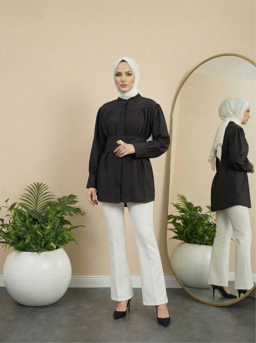 Zara Belden Kuşaklı Gömlek Siyah